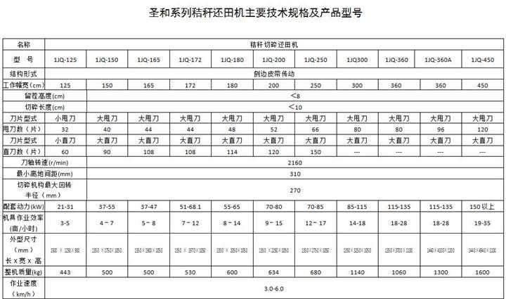 1JQ系列秸稈粉碎還田機,是我公司新研發的一款機型。它是為了適應拖拉機動力不斷提高、適應農民對作業效率的提高而開發的。本機最主要的特點是:a.加大了變速箱齒輪的模數,提高了變速箱的速比。b.加強了機身整體的強度,殼體內增加了過度襯板,減慢了殼體內粘土的速度。c.采用新工藝,提高了還田機刀具的使用壽命。d.機殼采用了后蓋開合機構,方便了用戶清理機殼,方便了刀具的更換與檢修。本機主要技術參數如下表:
