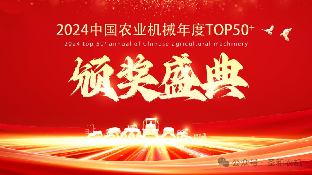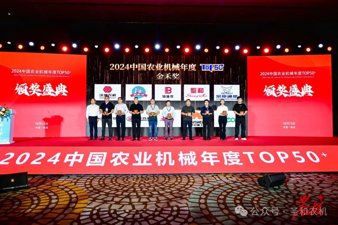 在“2024 中國農業機械年度 TOP50+”頒獎盛典上,圣和品牌再次蟬聯2024中國農業機械年度TOP50+“金禾獎”。